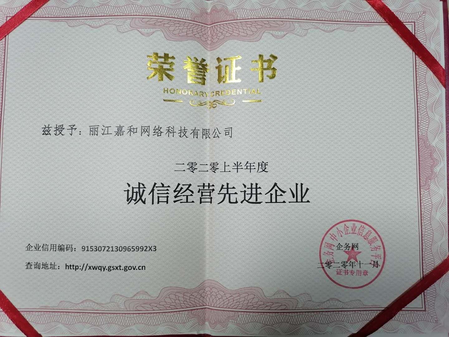 熱烈慶祝我司榮獲-2020年誠(chéng)信經(jīng)營(yíng)先進(jìn)企業(yè)