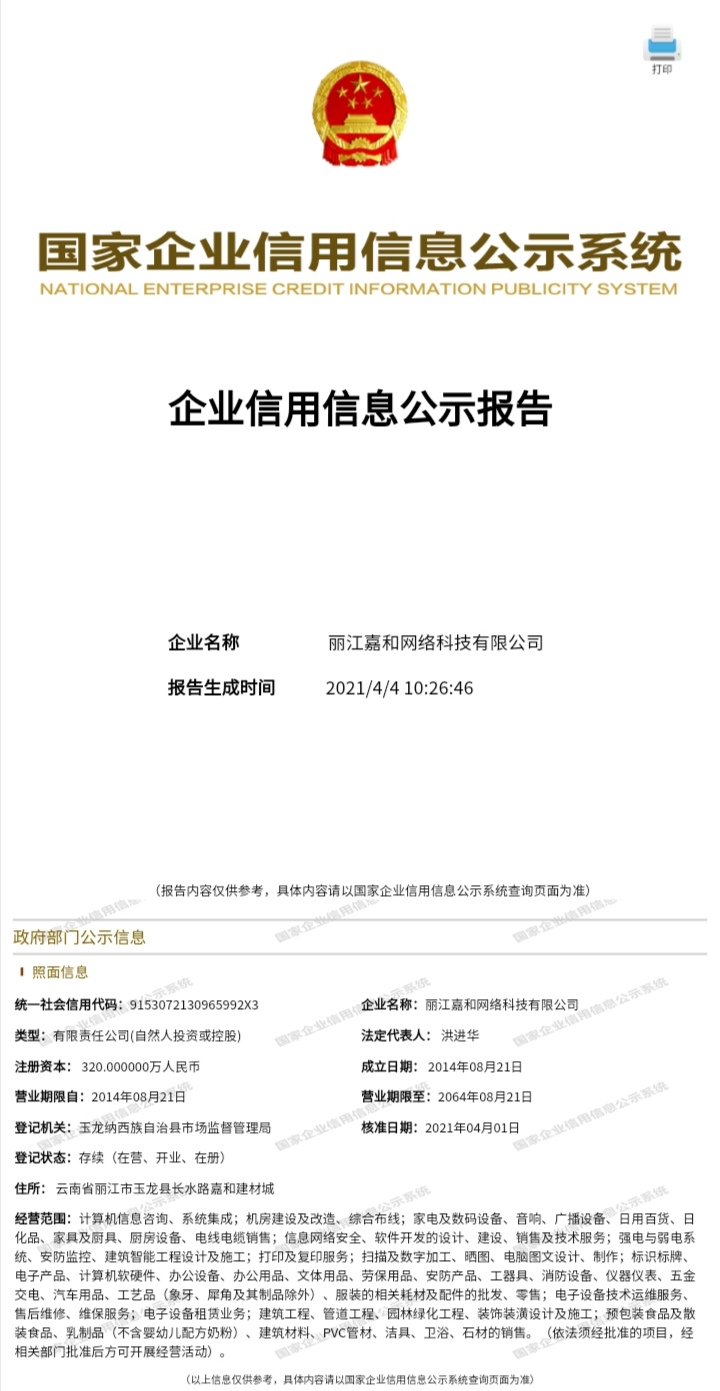 時間:2021/4/4 10:31:07 公司名:麗江嘉和網(wǎng)絡科技有限公司 瀏覽量: