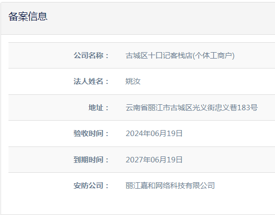 關(guān)于古城區(qū)十口記客棧店(個體工商戶)電子監(jiān)控安防合格證下證通知