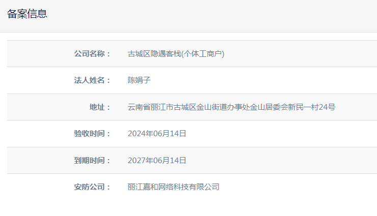 關(guān)于古城區(qū)隱遇客棧(個體工商戶)電子監(jiān)控安防合格證下證通知