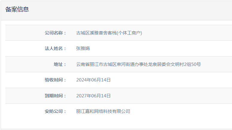 關(guān)于古城區(qū)納云歸舍民宿店(個(gè)體工商戶)電子監(jiān)控安防合格證下證通知