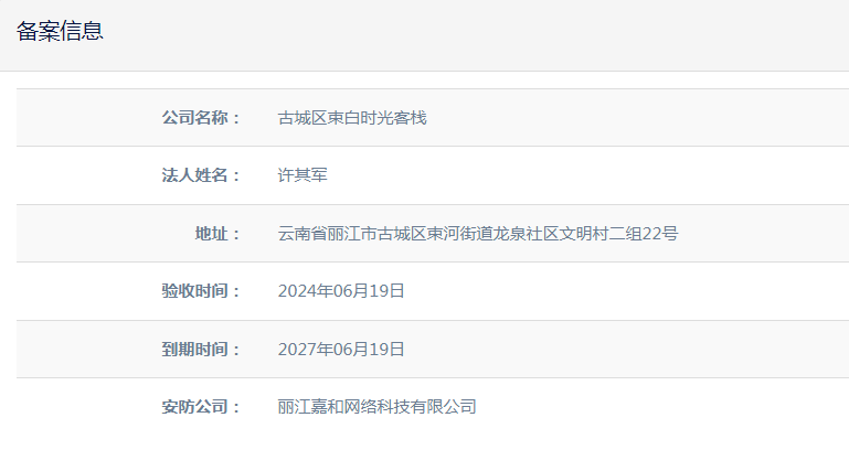 關(guān)于古城區(qū)束白時光客棧電子監(jiān)控安防合格證下證通知