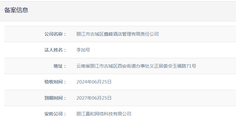 關(guān)于麗江市古城區(qū)鑫峰酒店管理有限責(zé)任公司電子監(jiān)控安防證下證通知
