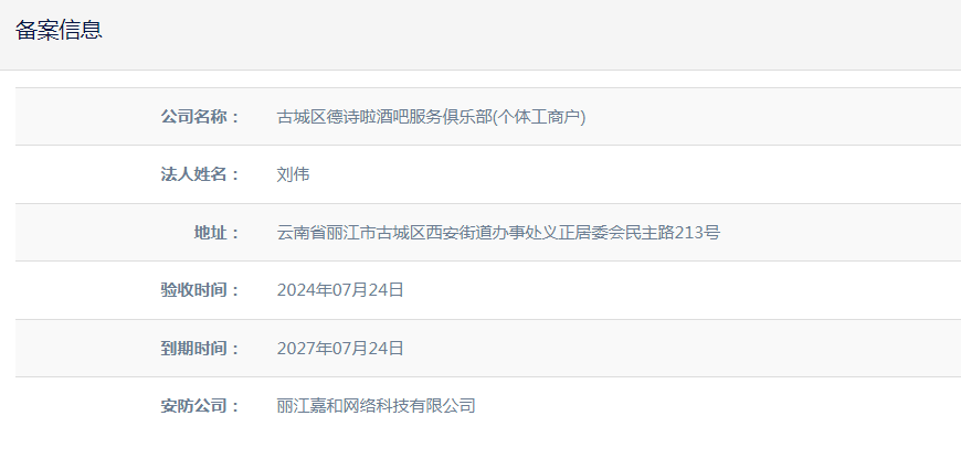 關(guān)于古城區(qū)德詩(shī)啦酒吧服務(wù)俱樂(lè)部(個(gè)體工商戶)電子監(jiān)控安防合格證下證通知