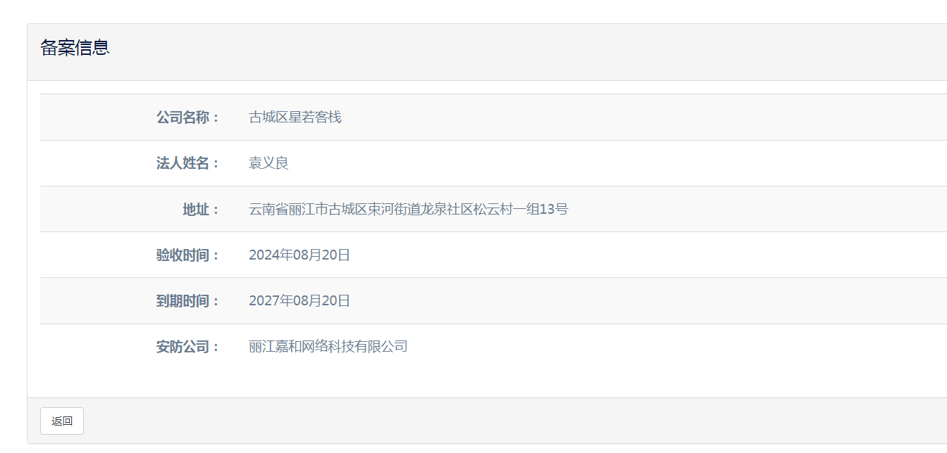 關(guān)于古城區(qū)納云歸舍民宿店(個體工商戶)電子監(jiān)控安防合格證下證通知