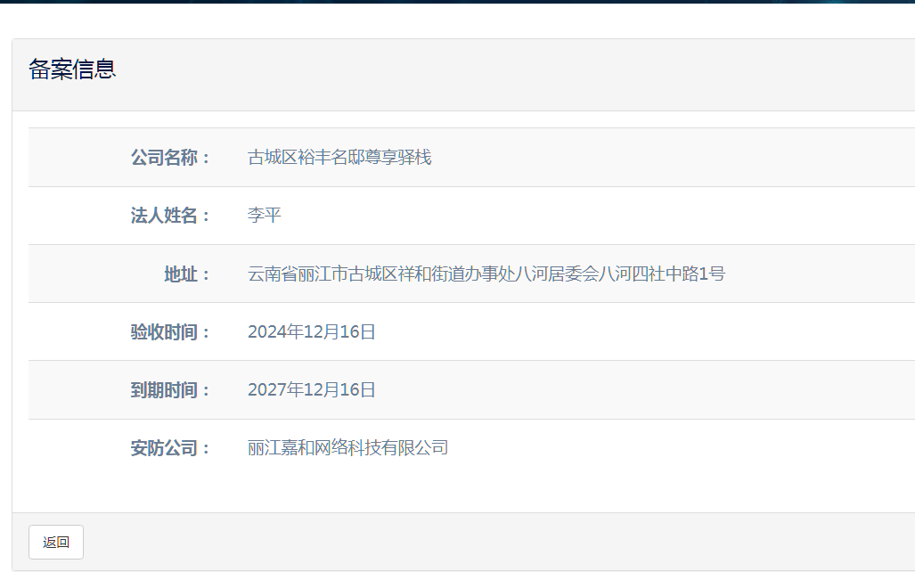 關(guān)于古城區(qū)納云歸舍民宿店(個(gè)體工商戶)電子監(jiān)控安防合格證下證通知