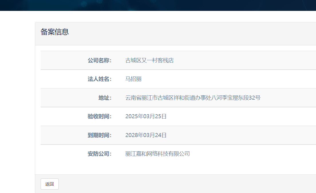 關(guān)于古城區(qū)納云歸舍民宿店(個(gè)體工商戶)電子監(jiān)控安防合格證下證通知