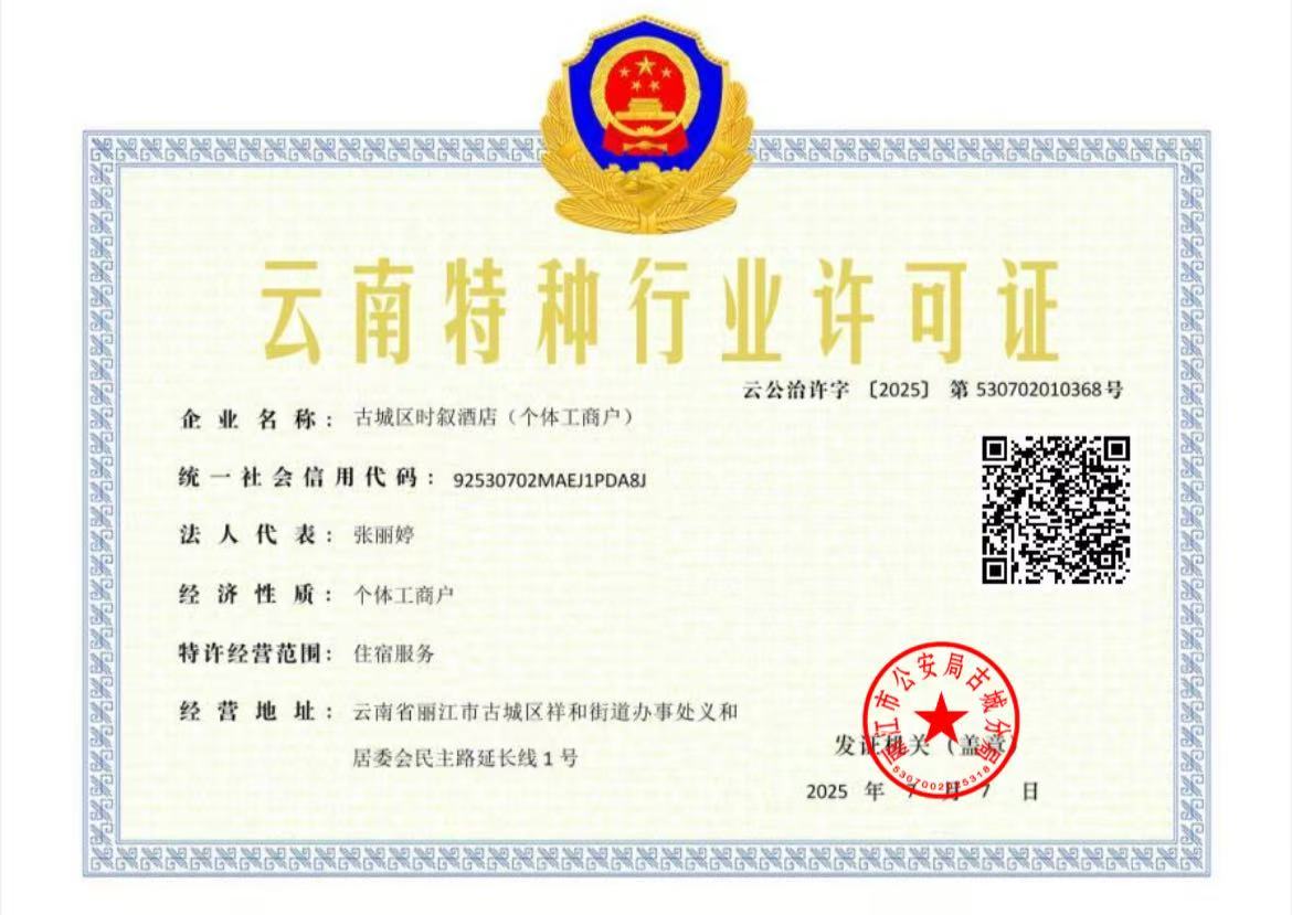 關(guān)于古城區(qū)時敘酒店(個體工商戶)電子特種行業(yè)許可證下證通知