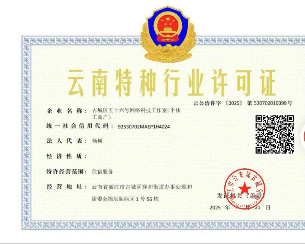 關于古城區(qū)納云歸舍民宿店(個體工商戶)電子監(jiān)控安防合格證下證通知